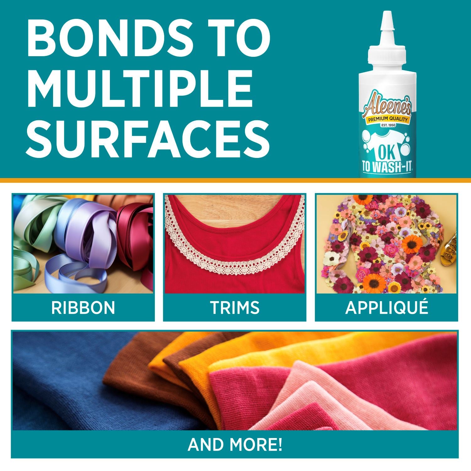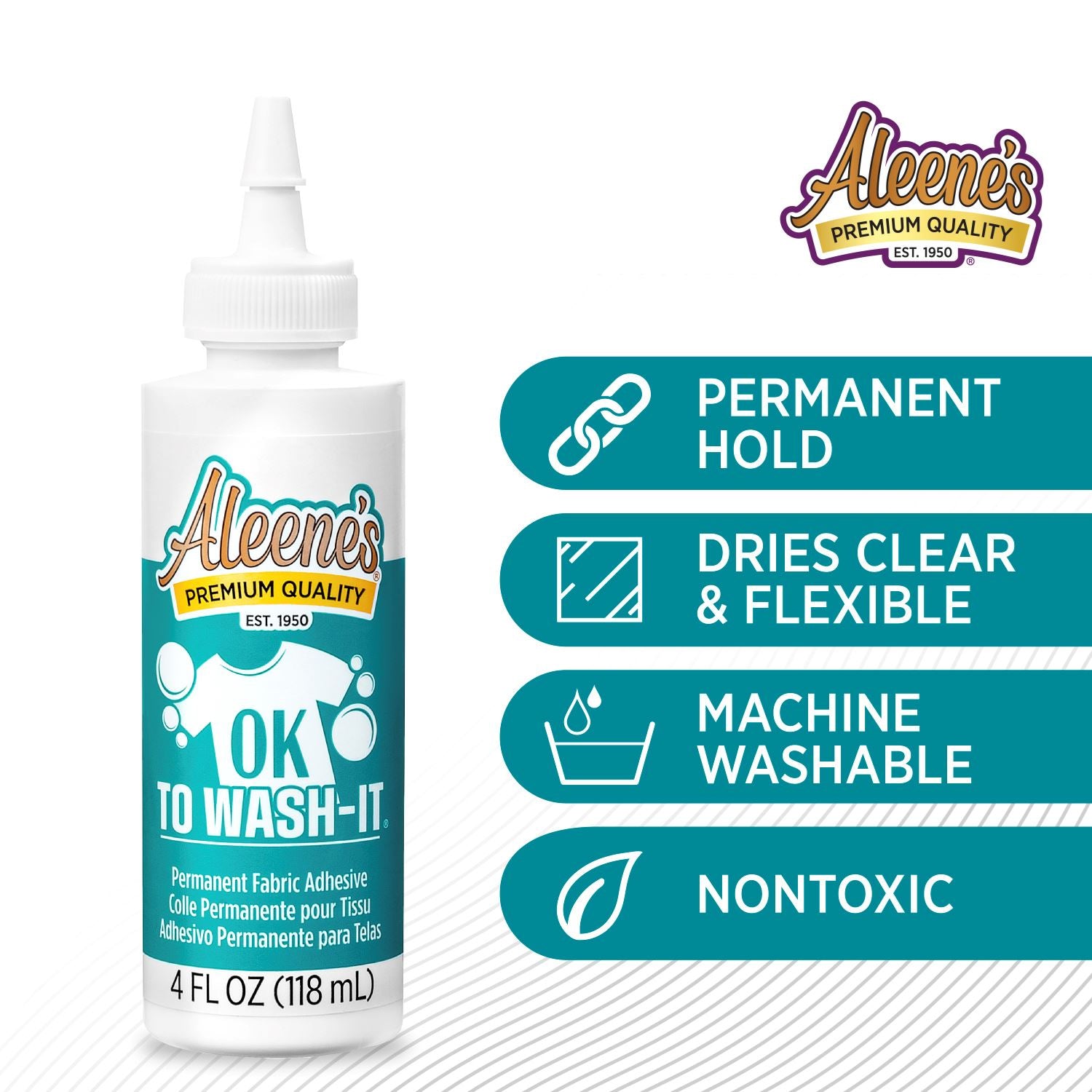 Ever wonder if it’s okay to wash that fabric glue you’re using? Aleene’s OK To Wash-It says it all in the name! Aleene’s OK To Wash-It is a permanent fabric glue that’s great for adhering fabrics and embellishments in a nontoxic, machine-washable formula that dries clear and flexible. Use it for embellishing costumes, home décor fabrics and much more! Features 1 (4 fl. oz.) bottle of Aleene’s OK To Wash-It Permanent Fabric Adhesive.