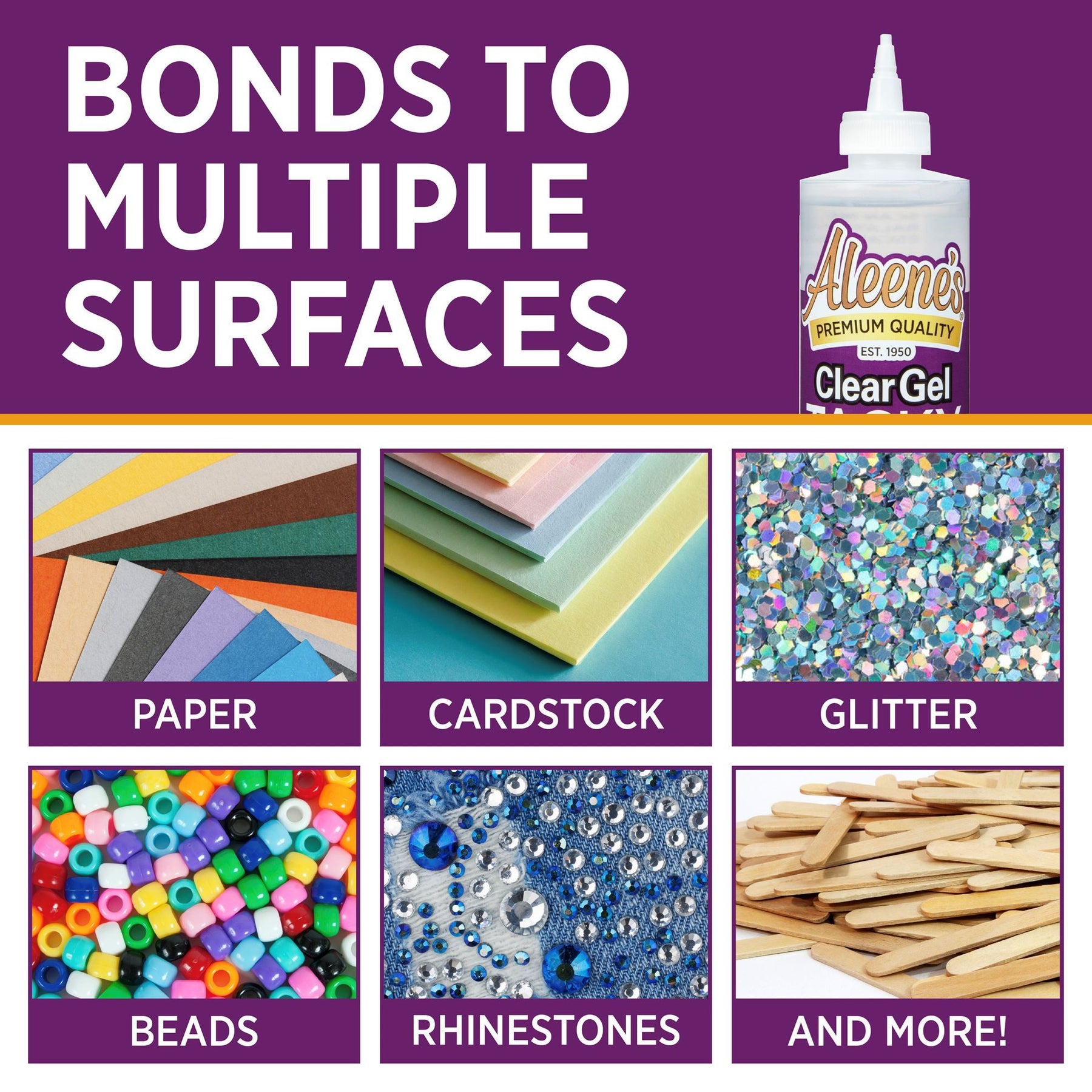 Get crafting with Aleene’s Clear Gel Tacky Glue! Its transparent nontoxic formula applies and dries crystal-clear for permanent see-through placement that won’t yellow over time. Dries super strong and permanent, making it great for crafts, hobbies, DIYs and household repairs. Features 1 (8 fl. oz.) bottle of Aleene’s Clear Gel Tacky Glue.
