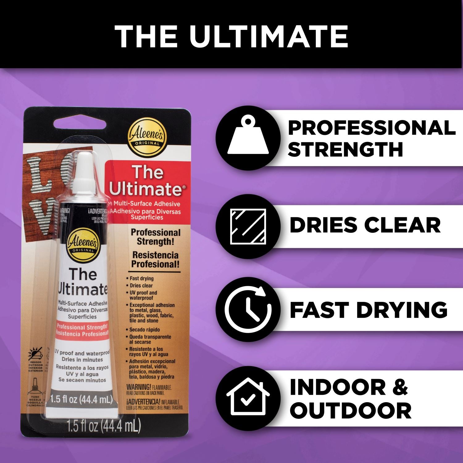 There’s only one glue you need when it comes to strength and versatility: The Ultimate Multi-Surface Adhesive. This industrial-strength glue provides exceptional adhesion to indoor and outdoor projects with a UV and waterproof formula that dries clear and fast. This all-purpose, powerhouse glue is strong enough to use on the toughest of surfaces but safe enough to use with your paper and mixed media projects. Features 1 (1.5 fl. oz.) tube of The Ultimate Multi-Surface Adhesive.