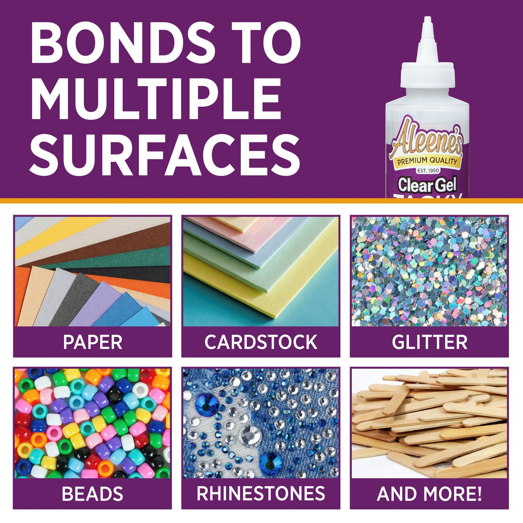 Get crafting with Aleene’s Clear Gel Tacky Glue! Its transparent nontoxic formula applies and dries crystal-clear for permanent see-through placement that won’t yellow over time. Dries super strong and permanent, making it great for crafts, hobbies, DIYs and household repairs. Features 3 (4 fl. oz.) bottles of Aleene’s Clear Gel Tacky Glue.